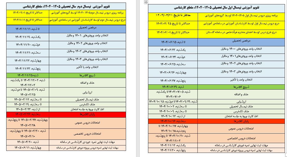 تقویم آموزشی کارشناسی (1405-1404)