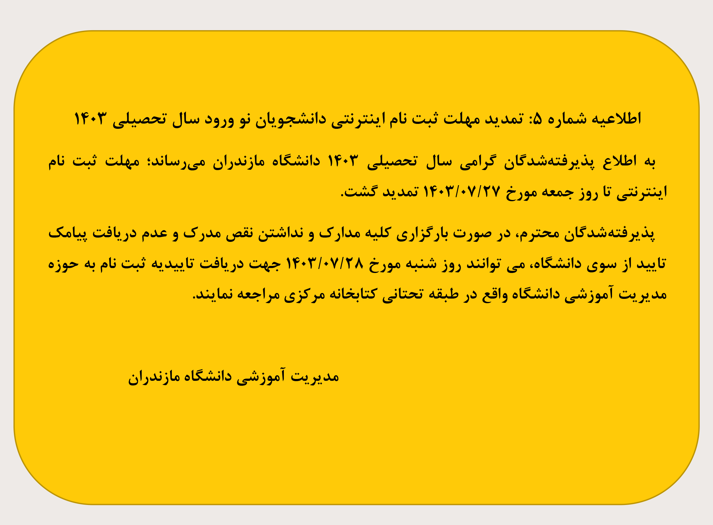 اطلاعیه شماره 5 دانشگاه مازندران در خصوص پذیرفته شدگان آزمون سراسری 1403 - دانشگاه مازندران