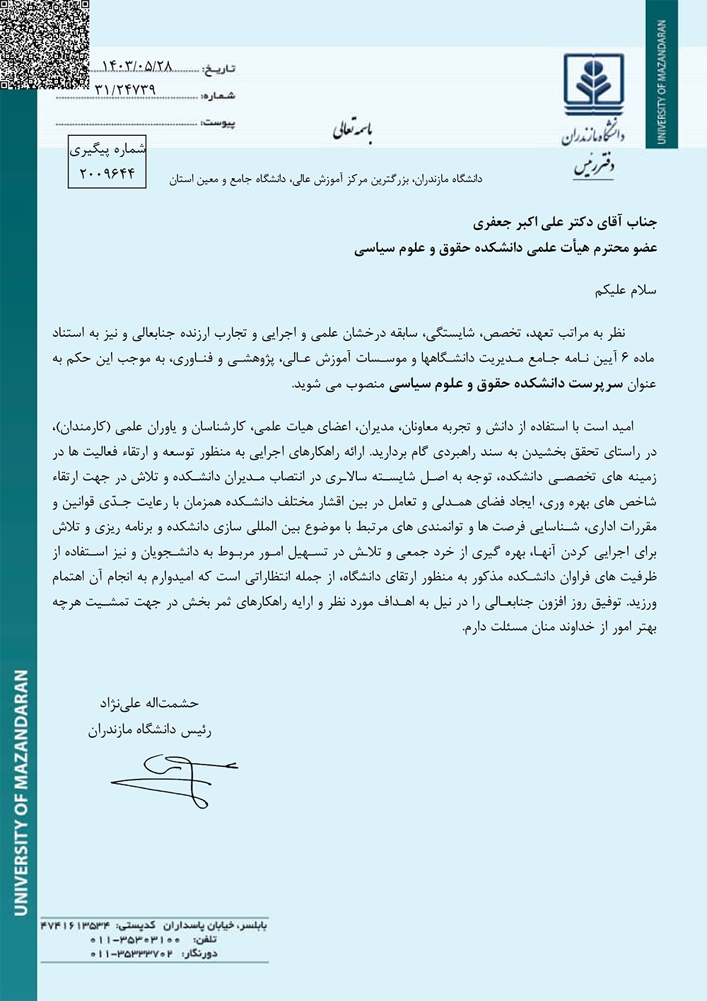 انتصابات جدید در دانشگاه مازندران انجام شد - دانشگاه مازندران