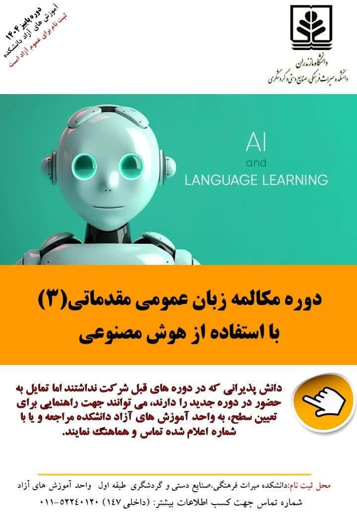 دوره مکالمه زبان عمومی مقدماتی(3) با استفاده از هوش مصنوعی - دانشگاه مازندران