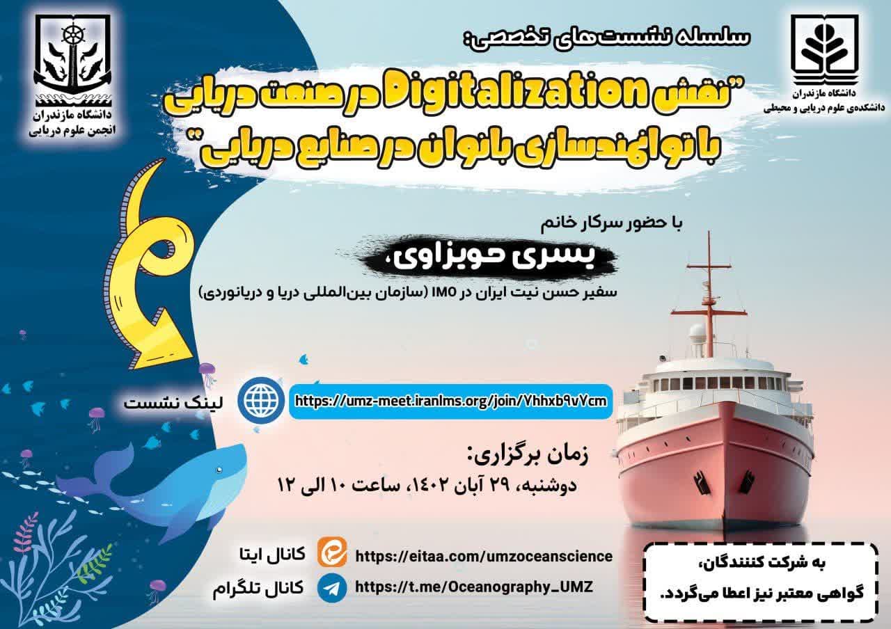 سلسله نشستهای تخصصی: نقش Digitalizaion در صنعت دریایی با توانمندسازی بانوان در صنایع دریایی - دانشگاه مازندران