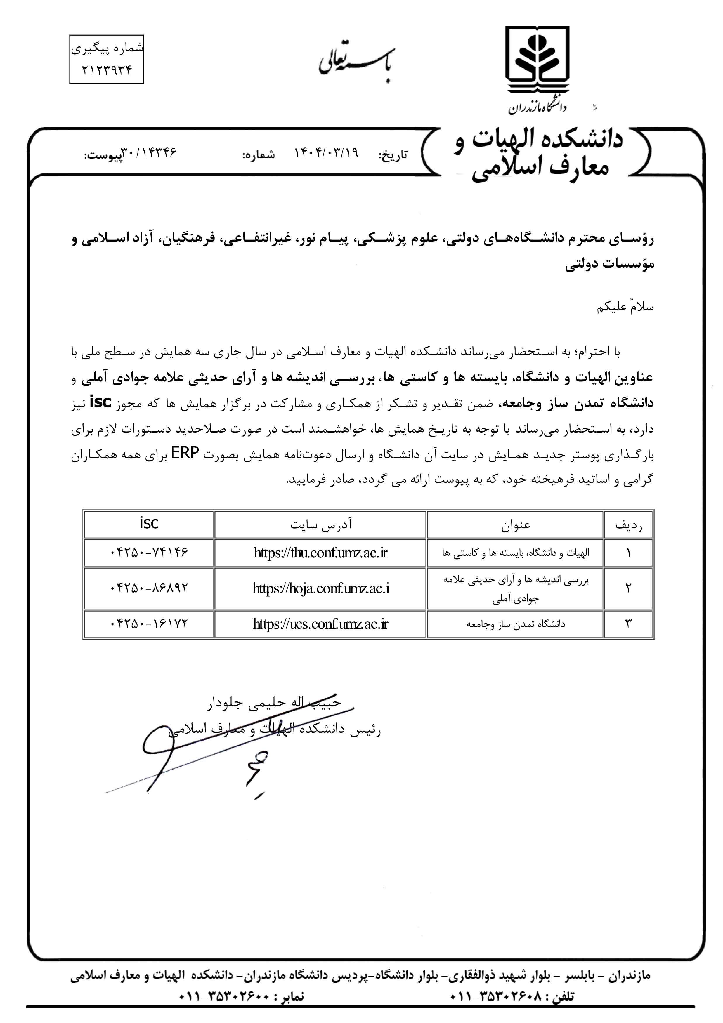 سه همایش دانشکده الهیات و معارف اسلامی دانشگاه مازندران در سطح ملی برگزار میشود - دانشگاه مازندران